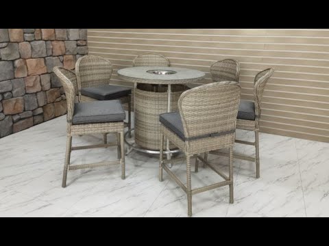 The Cambridge 7 Piece Bar Set is a fantastic place to relax and unwind in your garden with friends. Whether you are hosting a party, BBQ or family get-together, this stylish patio set is the perfect addition to any garden. Featuring six chairs and a bar table made with PE synthetic rattan to protect against UV rays and a sturdy aluminium frame to prevent rust and corrosion. The thick, soft and inviting cushions add extra comfort so that you can relax in style. Finished off with a fabulous and functional ice bucket, this stunning bar set is guaranteed to impress.